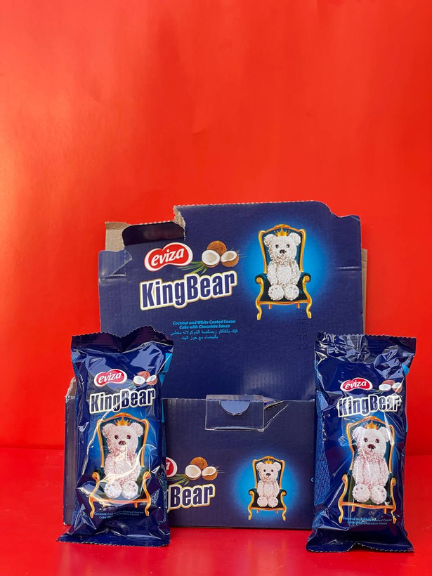 این محصول یک کیک شکلاتی به نام King Bear با روکش نارگیل و کاکائو است که در بستهبندیهای جداگانه عرضه میشود. کیک داخل بسته نرم و لطیف بوده و روی آن را با تکههای نارگیل سفید و روکشی از شکلات پوشاندهاند.