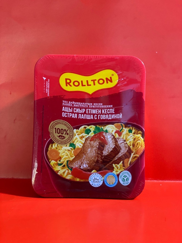 این بسته از برند Rollton نوعی غذای سریع آماده است که رشته با طعم گوشت گاو تند را ارائه میکند.